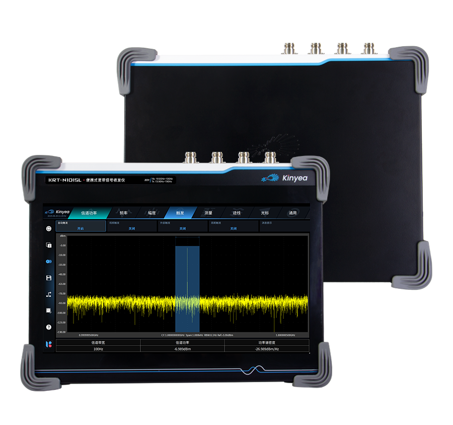 基于 14 英寸触摸屏(可选)的便携式一体化设计,增配高性能协处理器硬件选件可扩展动态重构的FPGA实时处理能力;进一步增配kyR(T)-xTS 系列 kySP 可扩展大容量数据记录与回放能力;增配GNSS硬件选件可扩展高精度时间与位置信息标记能力;增配外置的小型化功率放大器硬件选件还可提供大功率信号输出能力。还可搭配丰富的信号分析处理类 kySP 和信号生成类 kySP,实现航电信号、GNSS 信号、ISM/ 蜂窝信号、VHF/UHF 信号等分析与生成功能,特别适用于外场使用方式。
